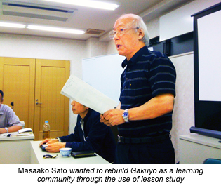 The reforms Mr Sato brought about in Gakuyo made him well known all over Japan. He is now a retired educational consultant and works with approximately 80 schools in the country, spending around 250 days a year participating in research lessons.