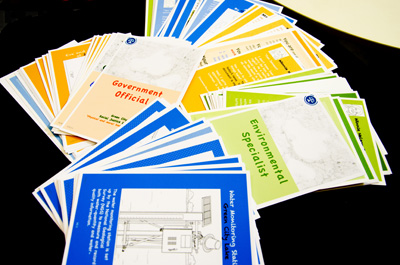 He gave an example of a board game that he designed: Green City Blues. For this game, players form teams to investigate the mysterious death of a man called Ivan who lived in Green City. Could it be a murder, suicide or even a brewing public health crisis?