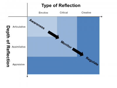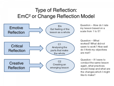 Dr Lee’s A-Cube Change 2-D Reflective Practice Model comprises two sub-models: The EmC2 model looks at the type of reflection while the A-Cube model looks at the depth of reflection. They are supposed to be implemented concurrently.