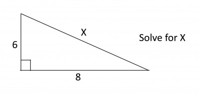 Today, I am going to think about how to solve for X in this right-angled triangle. You will have to use Pythagoras Theorem: A2 + B2 = C2. After that, you use 62 + 82 = X2. Then you will need to use your calculator to compute this value and finally arrive at the answer of 10.