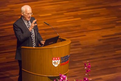 Professor Root-Bernstein delivering his keynote address at the Redesigning Pedagogy International Conference 2017.