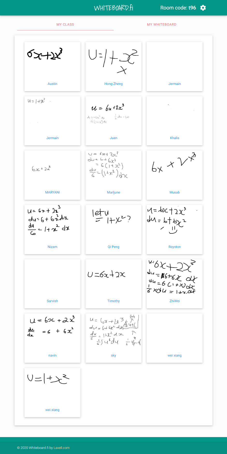 The benefits are twofold. On top of the ability to observe the whole class’ participation through a bird’s eye view, I could also highlight the important solutions that students came up with. For example, I could see if the students are able to select the suitable substitution to carry out integrations (see Figure 1). In addition to that, as some students might be shy and avoid asking questions during the online class, this platform allows me to observe their work in real-time.