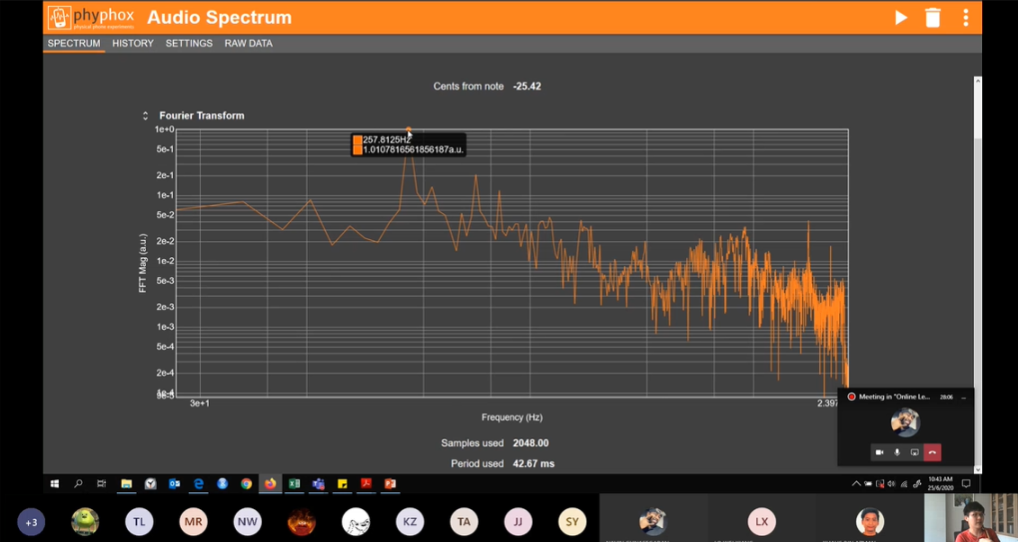 Figure 2. Phyphox in action. I demonstrated the analysis of a musical note using the app.