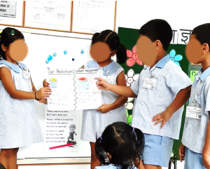 Figure 2. Students sharing their ideas, questions and findings from their experiment as self-directed learners.