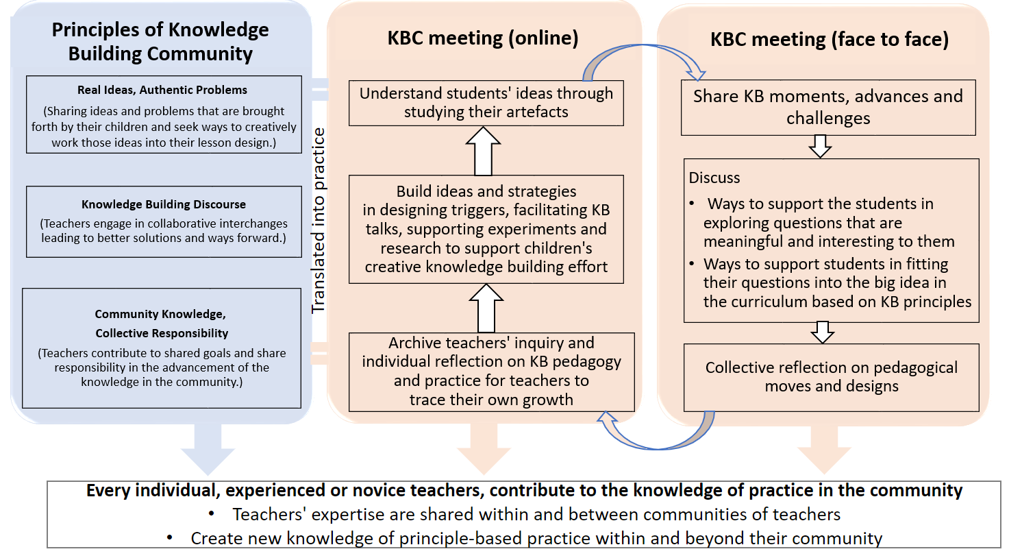 Exchange of strategies and ideas. | Share lesson enactment through student artefacts, their questions and ideas and their learning. - Teachers would post notes of their lessons on KF before each synchronous meeting.