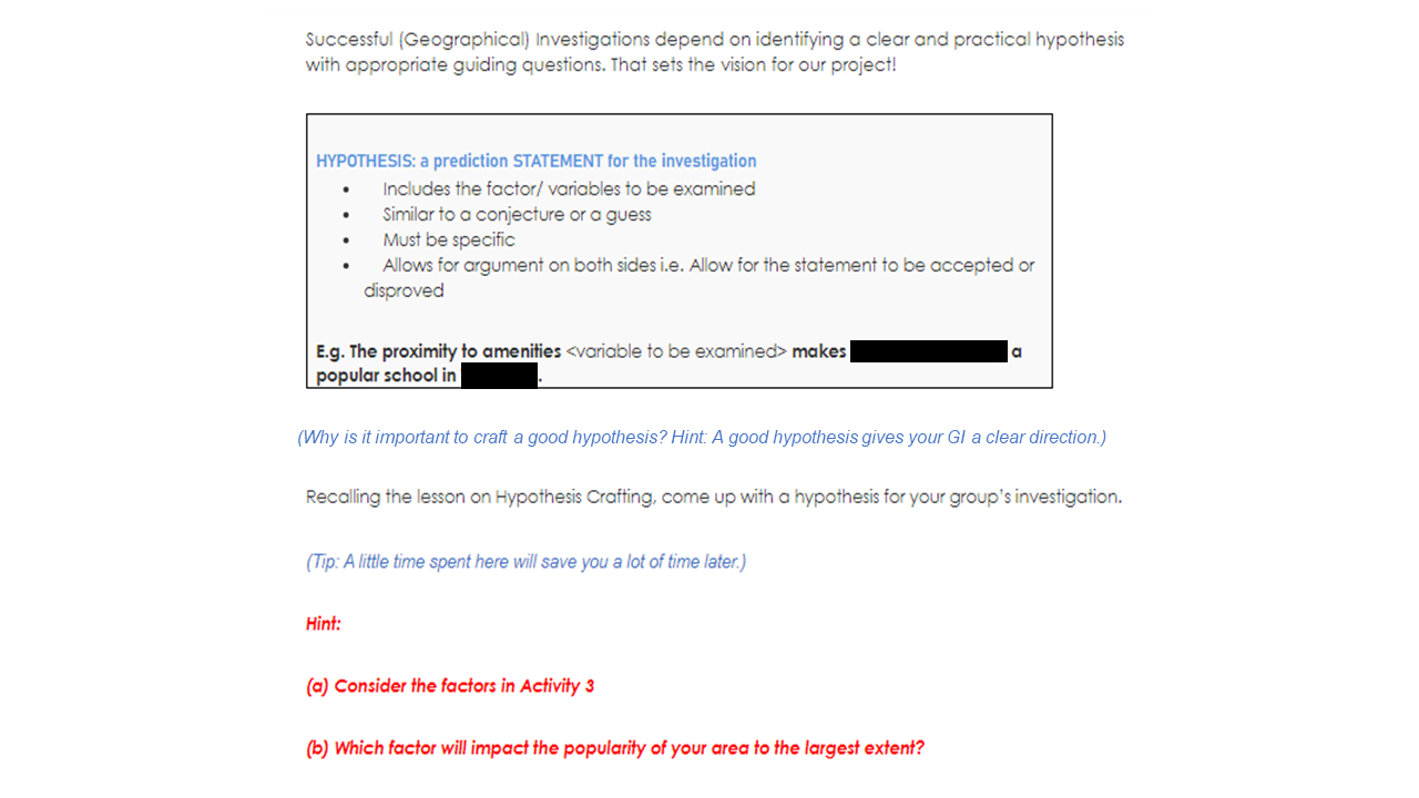- Geographical Inquiry approach (Ministry of Education, 2017) which includes conducting preliminary research, gathering data etc.