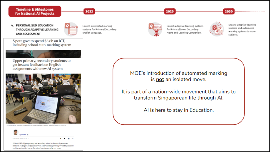 Ng, W. K. (2021, August 18). Upper primary, secondary students to get instant feedback on English assignments with new AI system. The Straits Times. Retrieved from https://www.straitstimes.com/singapore/parenting-education/moe-to-roll-out-ai-enabled-marking-system-for-english-language-writing