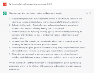 Figure 1. ChatGPT’s response when it was asked an Economics essay question.