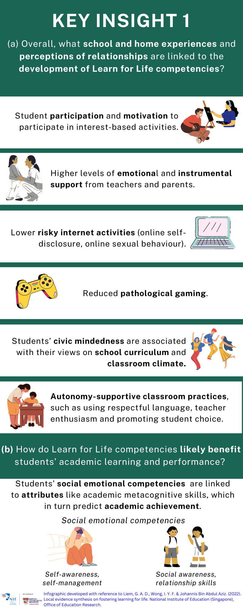 This synthesis draws from 34 studies that have assessed, developed, or evaluated ways to nurture Learn for Life competencies and dispositions among students in Singapore from 2012-2020.
