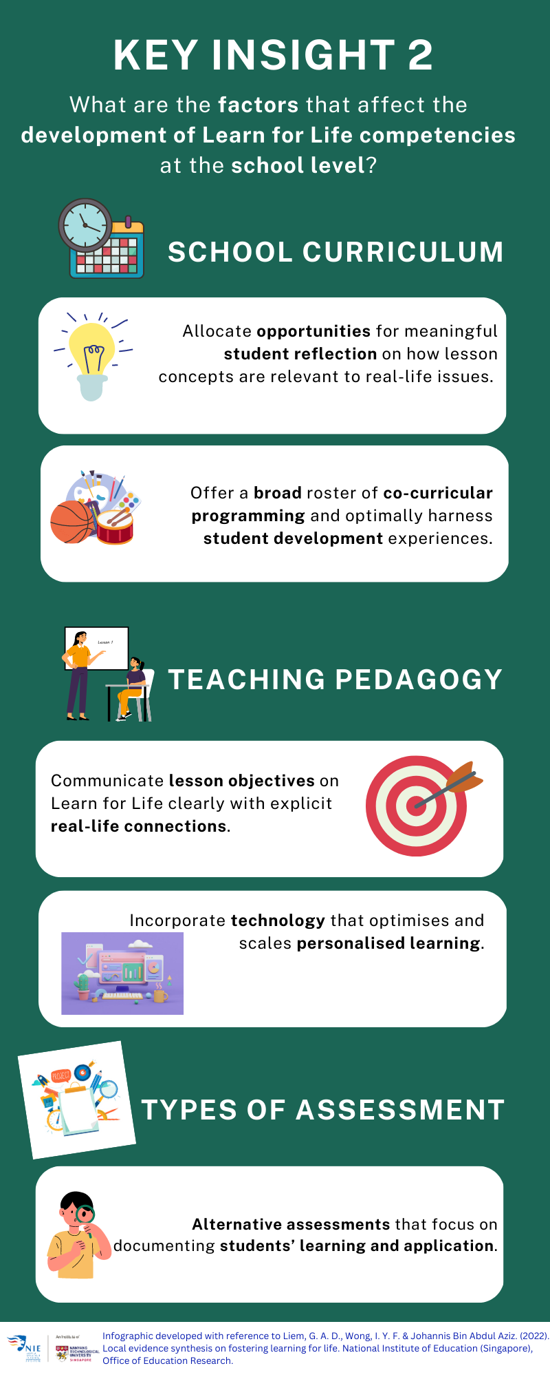 - There needs to be conscious alignment of school curriculum, teaching pedagogy, and assessment approaches on Learn for Life competencies.