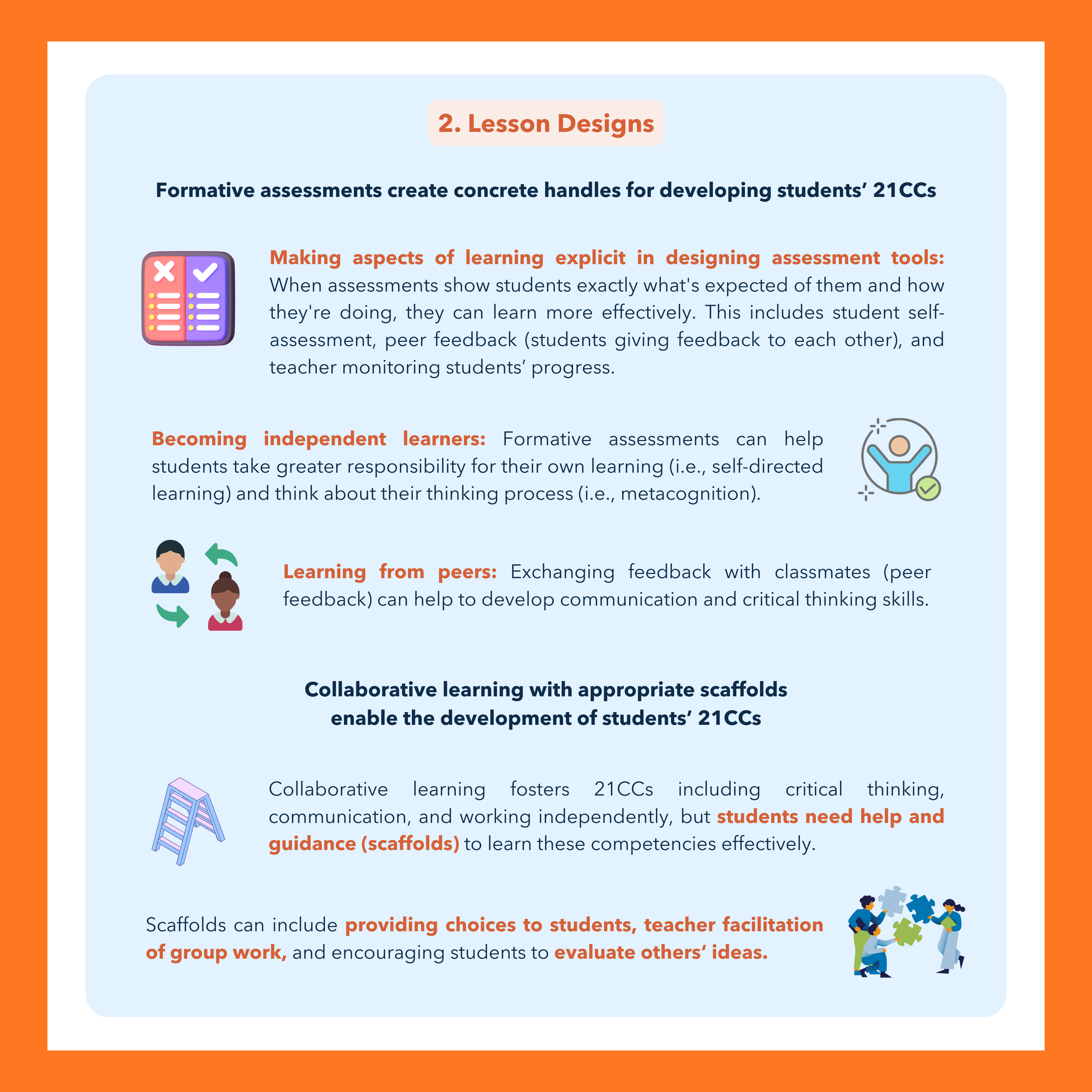 • It emphasises the importance of 21CCs, which include cognitive, intrapersonal, and interpersonal skills, for success in contemporary work and life.